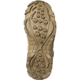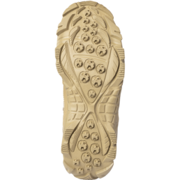 Suela fabricada en Poliuretano y la parte que tiene contacto con el suelo de TPU con diseño antiderrapante, resiste a aceites, grasas y algunos solventes. Usos recomendados para la industria, construcción y usos tacticos y militares